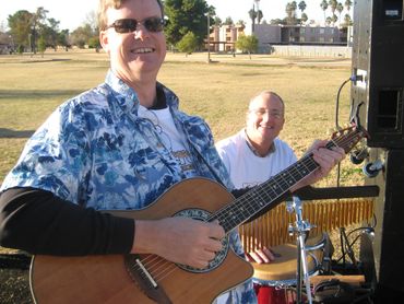 Dr. John Nagy, can be found behind the drum set. While pursuing studies that culminated in two undergrad degrees in Forestry & Biology, and a Ph.D. in Mathematical Biology, he played in bands and orchestras to put himself through school. When he's not playing with GedaLifE, Dr. John can be found in the Scottsdale Community College Community Band, playing in the pit for SCC's musicals, and teaching young minds at SCC, NAU, and ASU the intricacies of biology, and he works with a team of researchers looking for a cure for cancer.